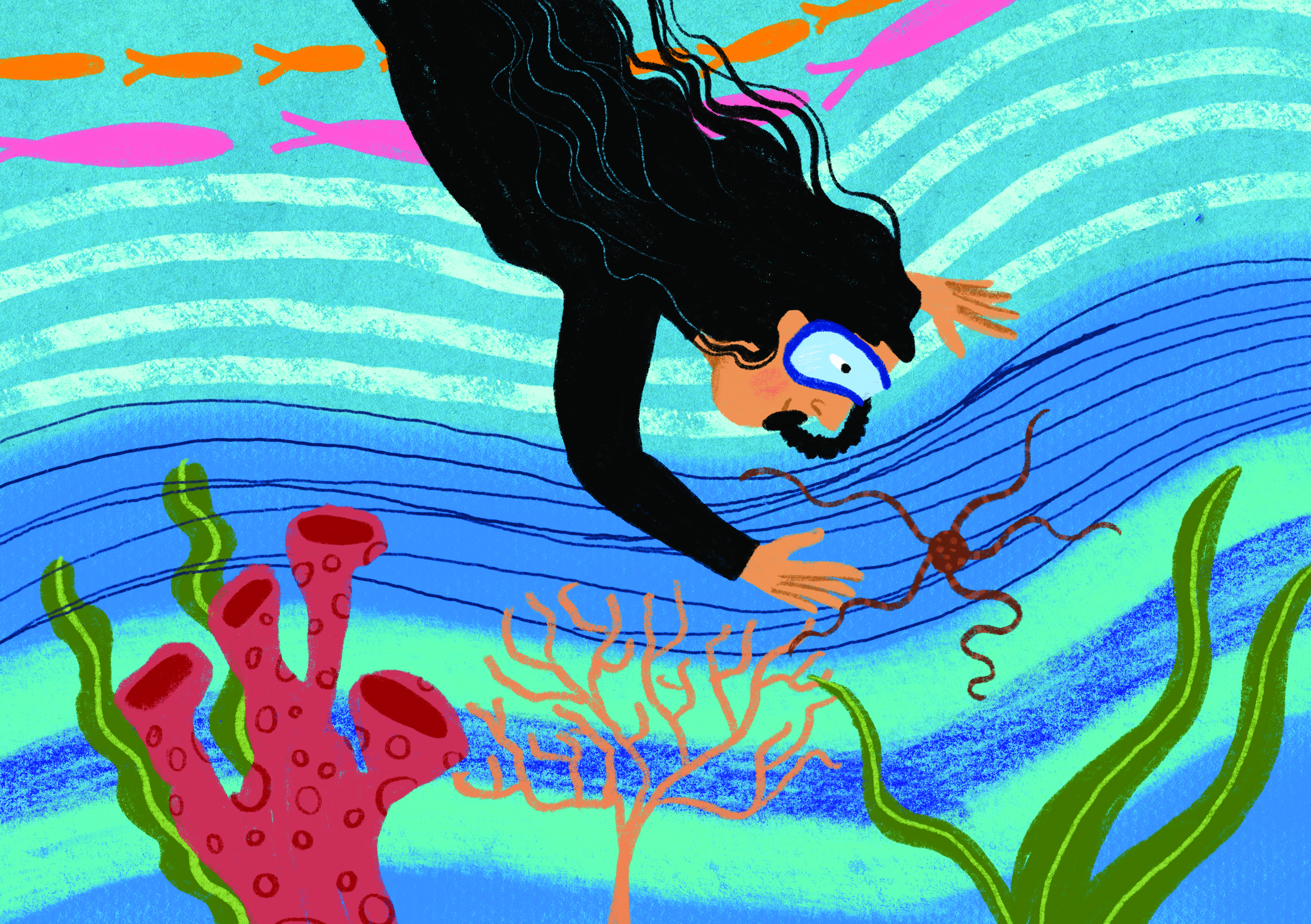Hoje, em uma universidade federal, trabalhando em uma pesquisa científica, consigo entender a importância das interações oceânicas. Mas não só as interações entre os animais e plantas que vivem lá, e sim a grande importância da nossa interação com o oceano. O mar está lá, seguindo um fluxo constante de marés e ondas que vêm e vão a cada segundo. Um simples mergulho consegue nos ensinar que nada é previsível e que observar e ir com calma é a melhor solução.
